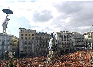 No hay ganchos celestes que descuelgan a Celedón desde el cielo a la torre. Hay que subir el muñeco, tender el cable, colgarlo y dejarlo caer cuando suene el chupinazo.