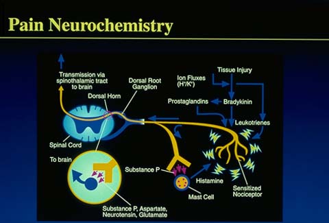 2- Fluye información en las dos direcciones. El nivel de disparo varía con los sucesos necróticos locales (alodinia reactiva) pero también puede hacerlo (y lo hace frecuentemente) cuando así se decide en el cerebro (alodinia proactiva, preventiva)