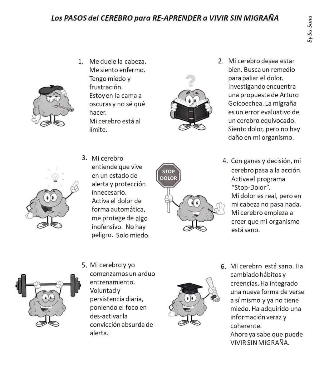 Su-sana es una difícilmente describible padeciente. Tuvo la inteligencia, coraje y paciencia necesarias para hacer frente al despropósito de la migraña y a su cerebro no le quedó otra que ceder ante el ímpetu de las andanadas racionales que le mandaba en el ámbito de la conciencia.