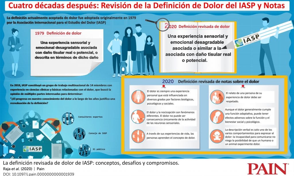 La nueva propuesta de definición sugiere que el dolor es una “experiencia sensorial y emocional desagradable, asociada o similar a la asociada con daño tisular real o potencial”